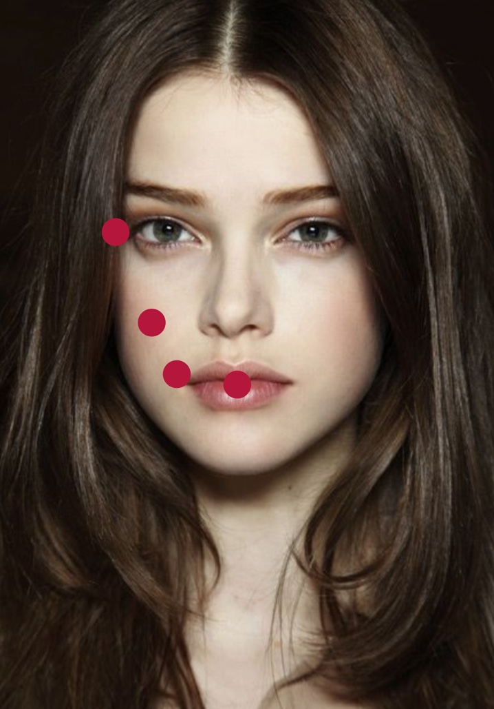 아래 빨간 점표 시의 입술 중앙