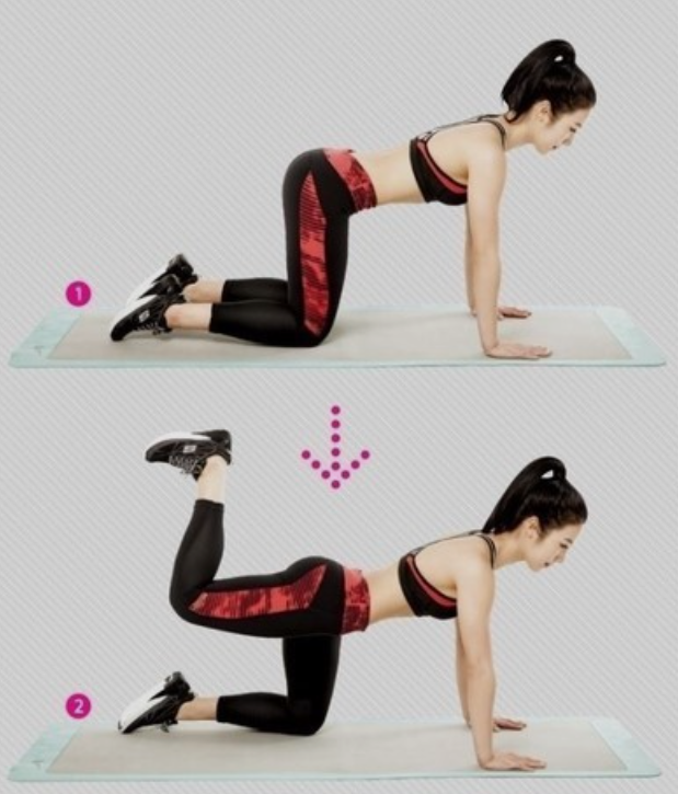 1. 바닥에 팔과 다리를 세우고 엎드린다.