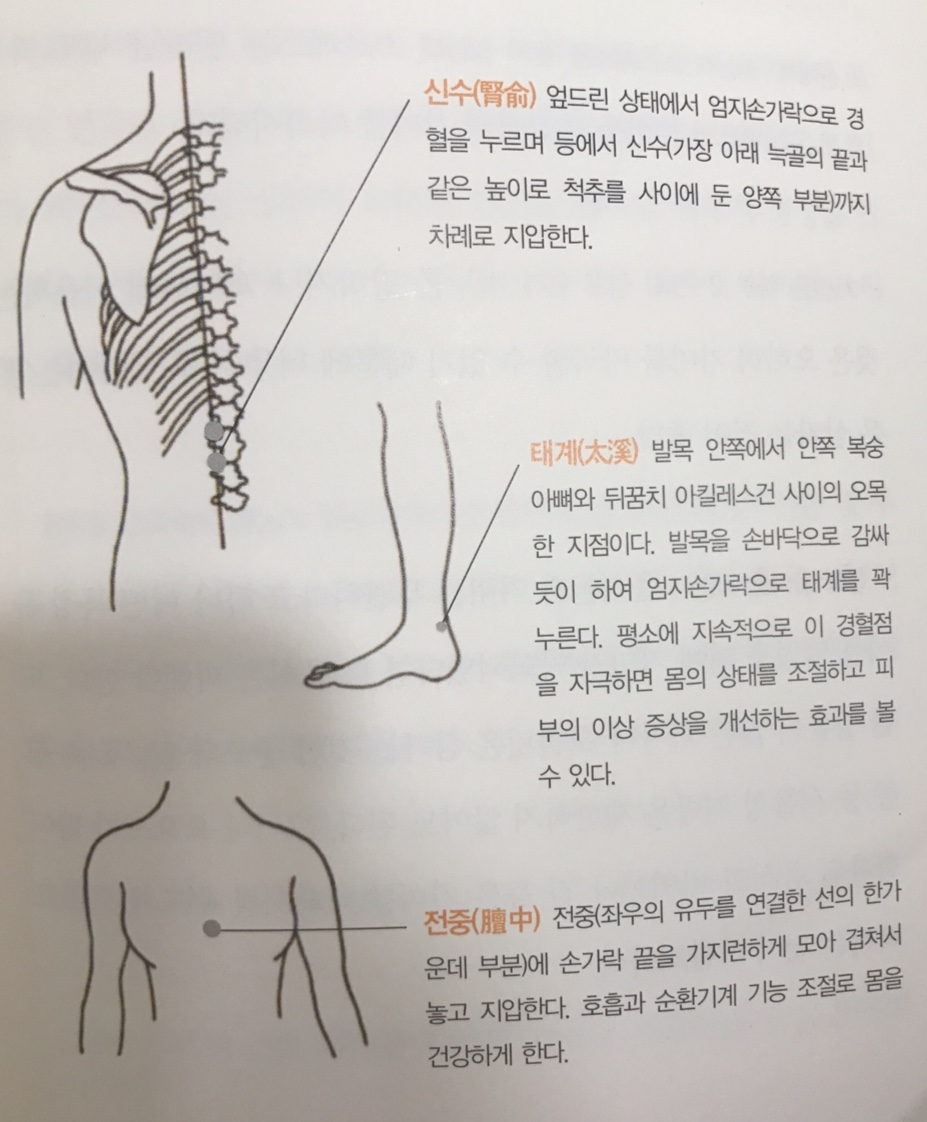 먼저 등과 허리의 각 경혈을