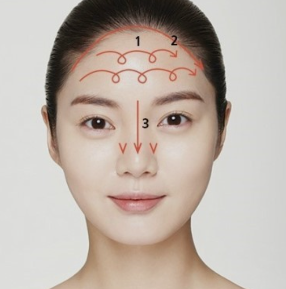 이마라인을 좌우로 10회씩 롤링해준다.