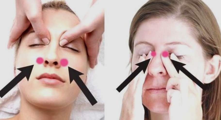 1. 콧볼 옆과 눈앞머리 지압점을
