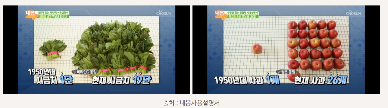 현재 우리가 먹고있는 채소, 과일의 영양가는