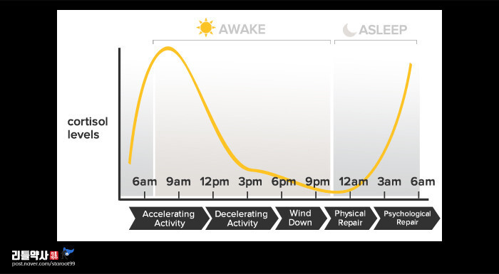 코르티솔은 우리 몸에서 하루24시간 내내