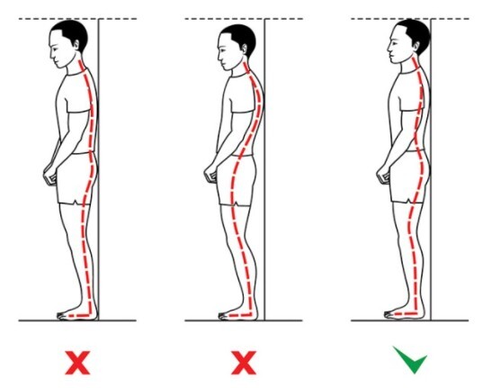 머리,어깨,허리 ,발뒤꿈치를 벽에 붙인다.