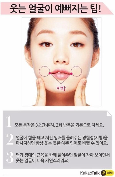 1) 입의 양쪽 끝을 오른쪽 눈 방향으로 최대한 올리고