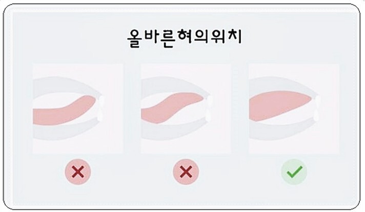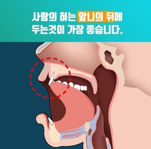 혀 끝부분이 앞니 뒤에 두는 것이다.