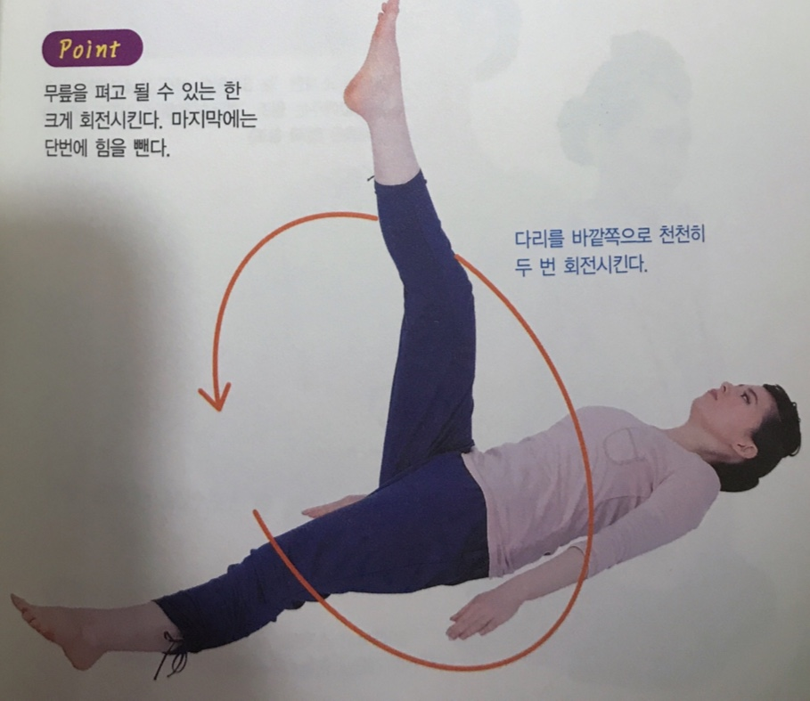 1.누운자세에서 다리를 쭉핀다.