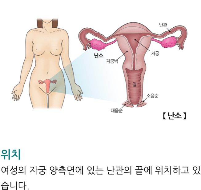 눈을감고 머리를 난소의 위치에