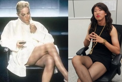 여자의 다리 꼬기는 샤론스톤의 장면처럼