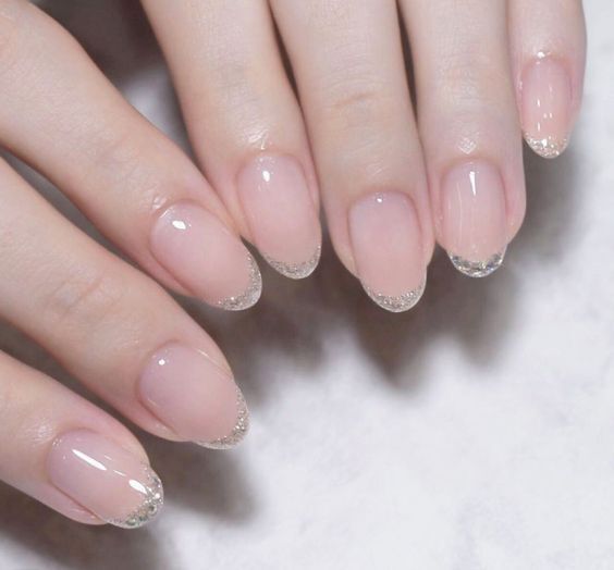 반짝임이 보이는 투명네일로
