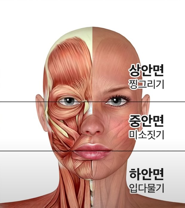 하안면과 상안면은 함께 움직이는 근육입니다.