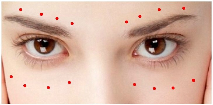 눈썹뼈부위 4포인트를 가운데 세손가락을 이용해