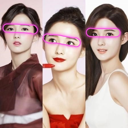이마에서 내려오는선이 여성적눈썹의 형태와