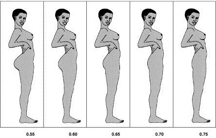 0.67~0.8의 허리 대 엉덩이 비율로 나타나고