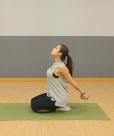 팔은 뒤로 최대한 뻗어주고 고개를 들어