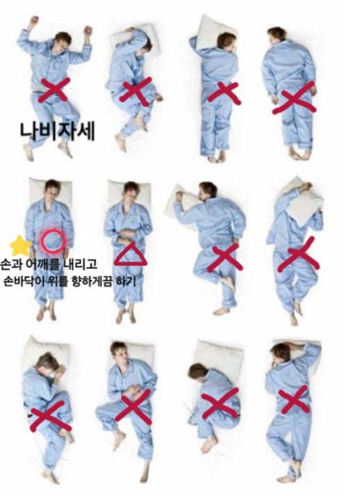 잠을 잘 때는 반드시 손을 내리고 자야한다.