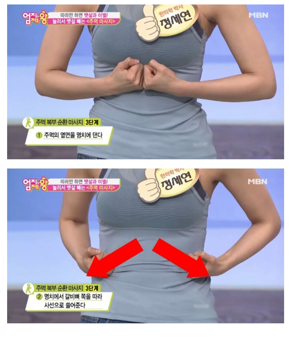 아래사진의 주먹복부 순환마사지를 해서