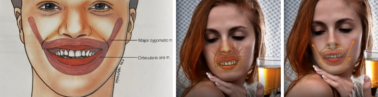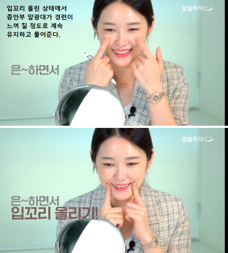 입꼬리가 대칭적으로 올라가게 교정한다.