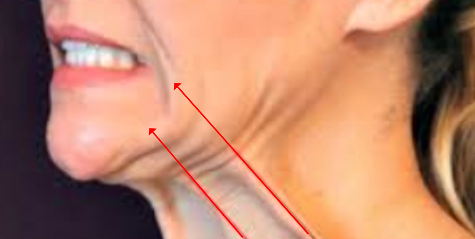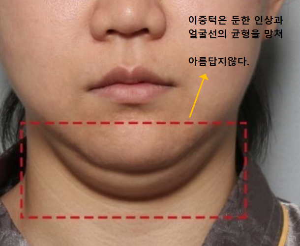 턱선이 쳐져 턱밑에 살이 늘어진다.
